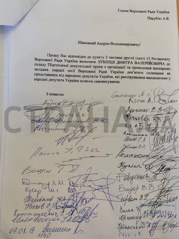 Подписи поставили: Владимир Арешонков, Александр Герега, Антон Киссе, Дмитрий Лубинец, Валерий Лунченко, Андрей Кит, Александр Урбанский, Виктор Бондарь, Юрий Шаповалов, Петр Юрчишин, Иван Чайковский, Ирина Констанкевич, Владислав Поляк, Степан Ивахив, Николай Кучер, Лариса Билозир, Николай Люшняк, Олег Кулинич, Валерий Давиденко, Роберт Горват, Игорь Гузь, Геннадий Вацак, Александр Ковалев, Максим Ефимов, Сергей Шахов, Сергей Вельможный, Александр Сухов , Богдан Дубневич, Тарас Батенко, Сергей Минько, Игорь Палица, Сергей Рудик, Игорь Молоток, Олег Колев. Еще одна фамилия написано неразборчиво.