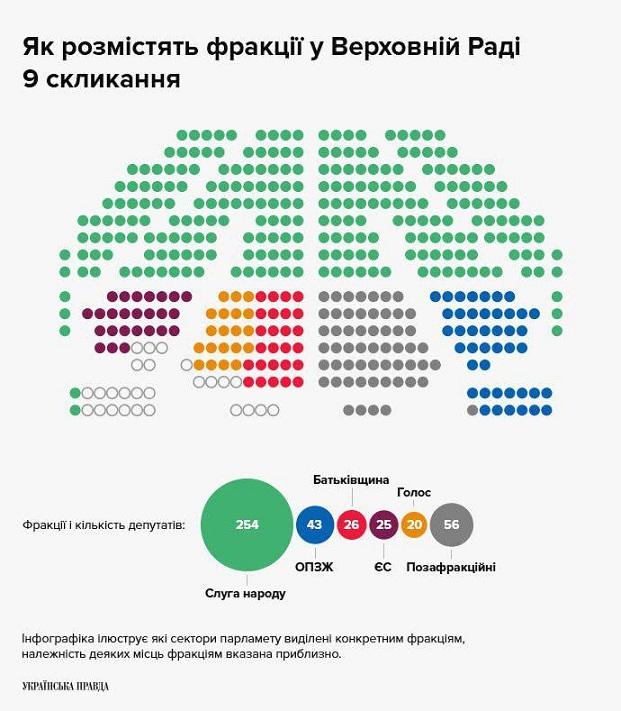Посередине будут сидеть нардепы от "Голоса", "Батькивщины" и внефракционные депутаты. В левом крыле займут места депутаты от "Оппозиционной платформы - За жизнь".