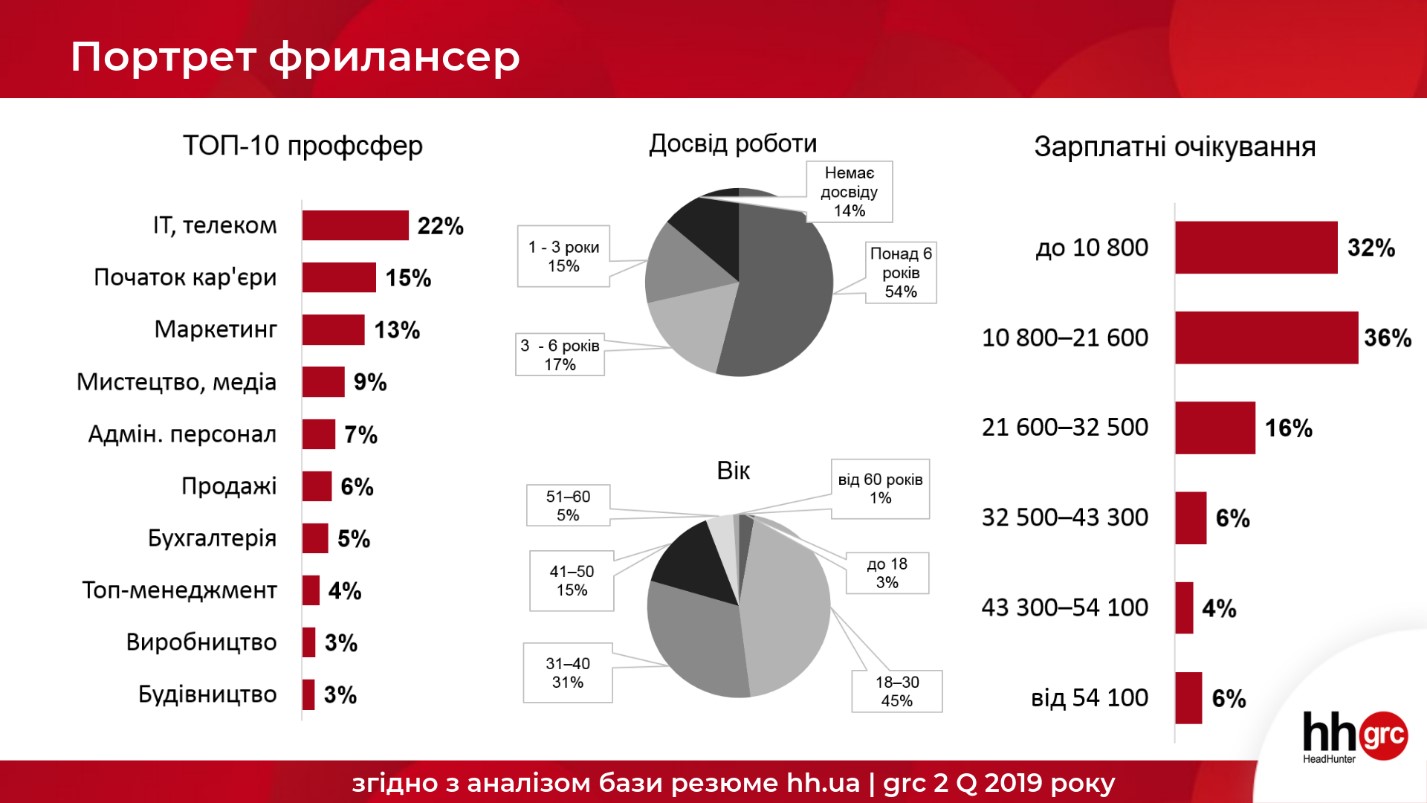 Во втором квартале 2019 года в Украине количество соискателей, которые хотели бы работать на фрилансе, увеличилось на 42% относительно того же периода 2018 года. Об этом со ссылкой на исследование базы резюме hh.ua и grc пишет "Экономическая правда"