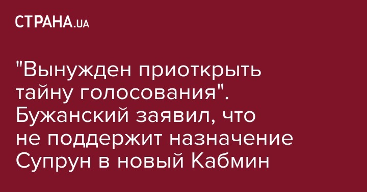 "Вынужден приоткрыть тайну голосования". Бужанский заявил, что не поддержит назначение Супрун в новый Кабмин