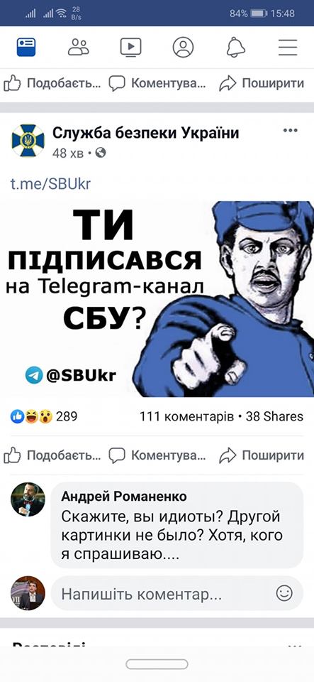 Подписчики Службы безопасности такой креатив не оценили. Большинство из них возмущены использованием советского плаката со стороны СБУ, многие рекомендуют уволить того, кто выступил автором подобной рекламы.
