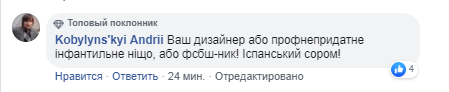 "Ваш дизайнер или профнепригодное инфантильное ничто, или фсбш-ник! Испанский стыд!" - возмутился Андрей Кобылинский.