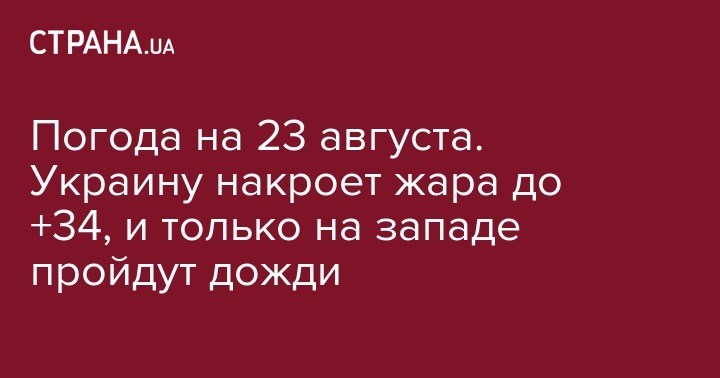 В пятницу, 23 августа, в Украине западные и северные области будут находиться под влиянием более прохладного воздуха, на остальной территории ожидается жара до +34 градусов. Об этом сообщает Укргидрометцентр.