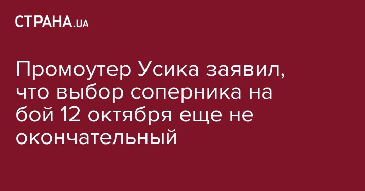 Ранее соперником Александра Усика в этом матче назывался камерунский боксер Карлос Такам, но он подписал контракт с промоутерской компанией Star Boxing и вряд ли сможет выйти в ринг 12 октября против украинца.