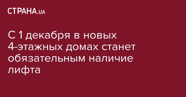 С 1 декабря в силу вступят обновленные государственные строительные нормы (ГСН) с требованием проектирования лифтов в новых жилых домах высотой от четырех этажей, а также рекомендацией их установки в новых домах от трех этажей. Об этом сообщается на сайте Минрегион.