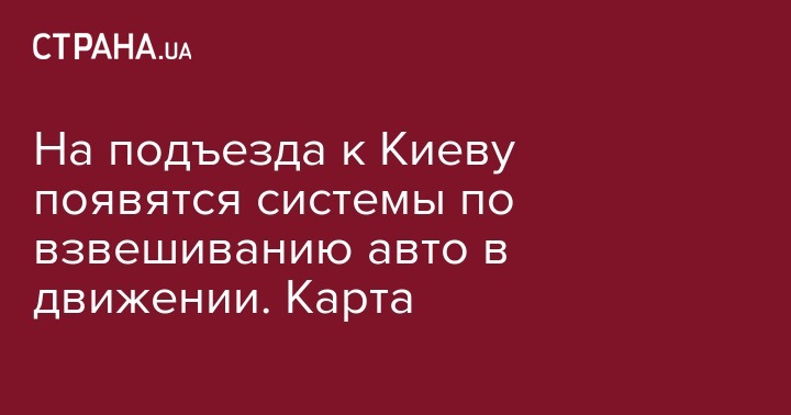 К 30 августа на подъездах к Киеву установят две площадки для автоматического взвешивания автомобилей "в движении" Weight-in-Motion. Это предусмотрено в рамках пилотного проекта, который за 2-3 года планируют расширить по территории всей страны. Об этом сообщает пресс-служба "Укравтодора".