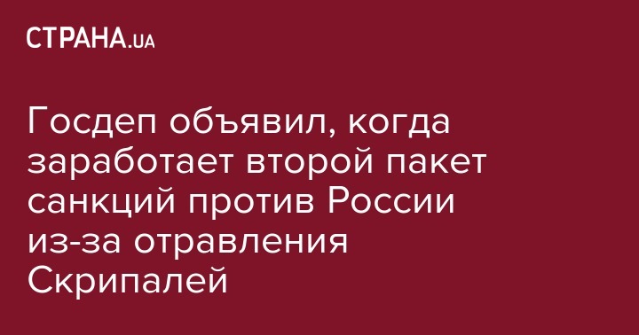 В пятницу, 23 августа, Госдеп США подтвердил, что второй пакет санкций по делу об отравлении экс-сотрудника ГРУ Сергея Скрипаля начнет действовать с 26 августа этого года. Об этом говорится в заявлении ведомства, обнародованном в Федеральном регистре США, передает Интерфакс