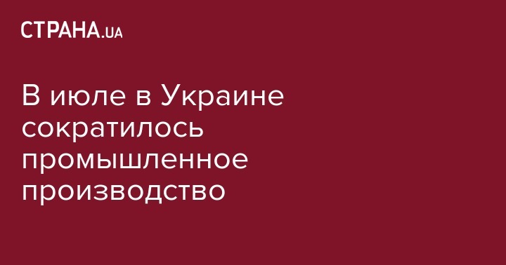 В июле 2019 года промышленное производство в Украине сократилось на 0,2% по сравнению с июлем 2018 года. Об этом сообщили в Государственной службе статистики (Госстат) в пятницу, передает Интерфакс-Украина.