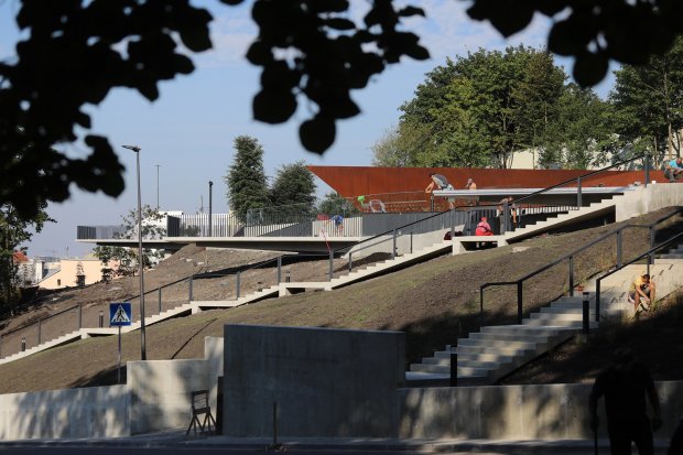 Отмечается, что была открыта только первая часть мемориала, так как еще будет достроен пешеходный мост, соединяющий памятник со сквером "На валах".