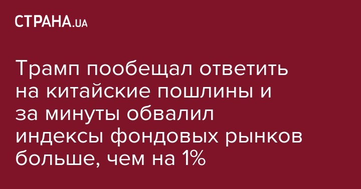Трамп пообещал ответить на китайские пошлины и за минуты обвалил индексы фондовых рынков больше, чем на 1%