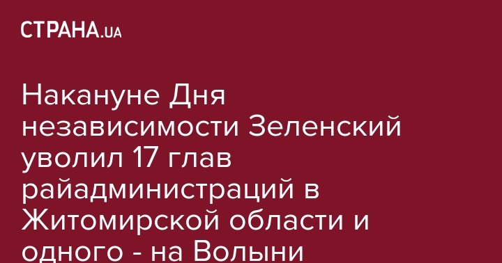 Накануне Дня независимости Зеленский уволил 17 глав райадминистраций в Житомирской области и одного - на Волыни