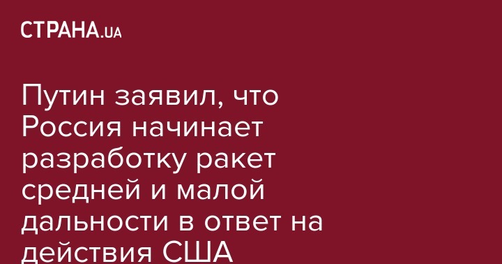 После своего визита в Финляндию, президент РФ Владимир Путин на пресс-конференции по итогам переговоров с президентом Саули Ниинисте, заявил, что Россия займется разработкой ракет средней и меньшей дальности, но не будет их размещать в европейской части страны, пока этого не сделают США.