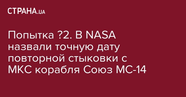 Попытка №2. В NASA назвали точную дату повторной стыковки с МКС корабля Союз МС-14