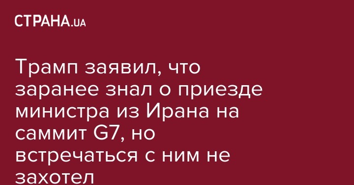 Трамп заявил, что заранее знал о приезде министра из Ирана на саммит G7, но встречаться с ним не захотел