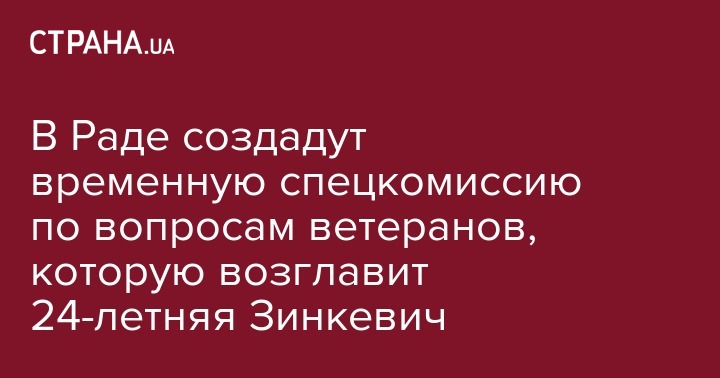 В Раде создадут временную спецкомиссию по вопросам ветеранов, которую возглавит 24-летняя Зинкевич