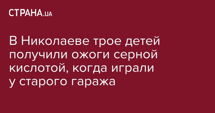 В Николаеве трое детей получили незначительные ожоги в результате контакта с серной кислотой, которую они нашли во время игры возле разобранного гаража. Об этом сообщает пресс-служба ГосЧС Николаевской области.