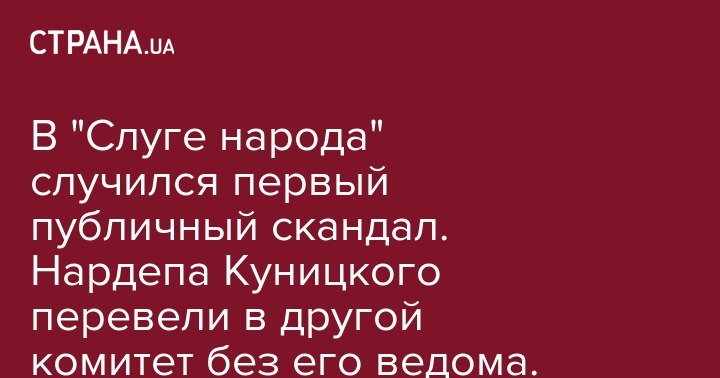 В пропрезидентской партии "Слуга народа" произошел первый публичный внутренний конфликт. Народного депутата от СН Александра Куницкого, который, по предварительным данным, должен был стать заместителем главы комитета по вопросам обеспечения правоохранительной деятельности, без его ведома перевели в другой документ.