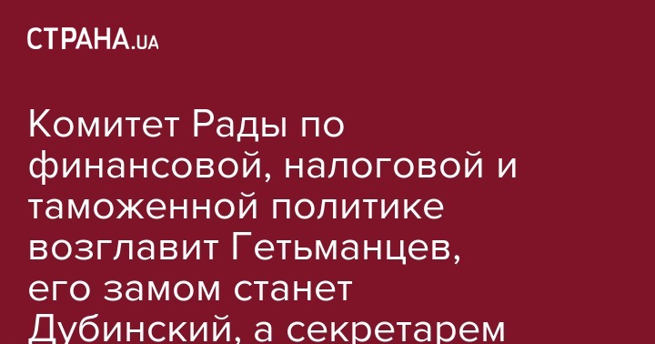 По его словам, Даниил Гетьманцев станет председателем комиета, экс-глава Волынского облсовета Игорь Палица - секретарем. А Александр Дубинский заместителем председателя комитета. Сам Дубинский у себя в Telegram-канале эту информацию подтвердил и уточнил, что его специализацией будут банки и финансовые рынки.
