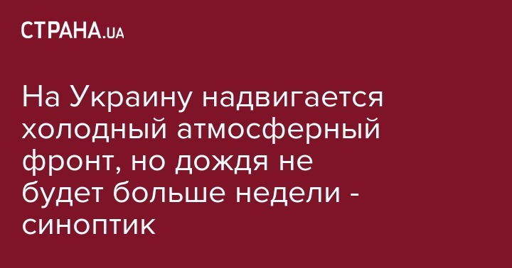 В четверг, 29 августа, в Украину придет холодный атмосферный фронт, который, впрочем, принесет не осадки, а легкое похолодание на северо-востоке страны. Об этом в Facebook написала синоптик Наталья Диденко.