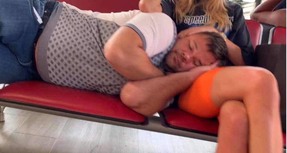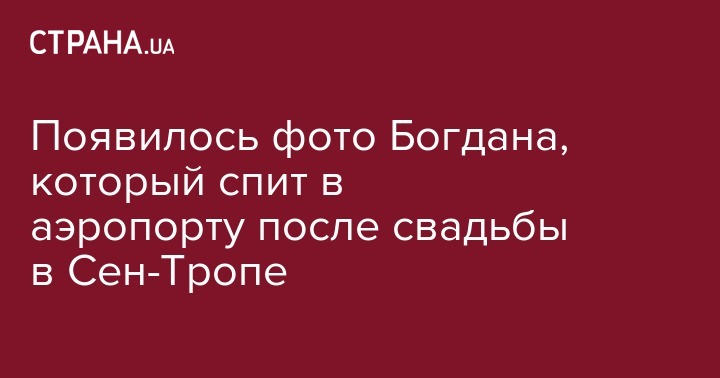 В сети появилось фото Андрея Богдана, который в ожидании своего рейса спит на коленях у своей спутницы во французском аэропорту после свадьбы юриста Андрея Довбенко в Сен-Тропе. Ее в своем Facebook выложил журналист Юрий Николов, уточнив, что снимок ему прислали анонимно.
