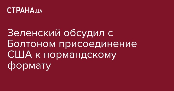 Во время встречи с советником президента США по нацбезопасности Джоном Болтоном Владимир Зеленский заявил, что Украина приветствует присоединение Штатов к нормандскому формату. Об этом сообщает пресс-служба главы государства
