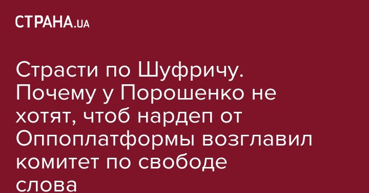 27 августа "Страна" сообщила, что комитет по вопросам свободы слова в Верховной Раде Украины возглавит представитель партии "Оппозиционная платформа – За жизнь" Нестор Шуфрич. Это вызвало бурную реакцию среди некоторых политиков.
