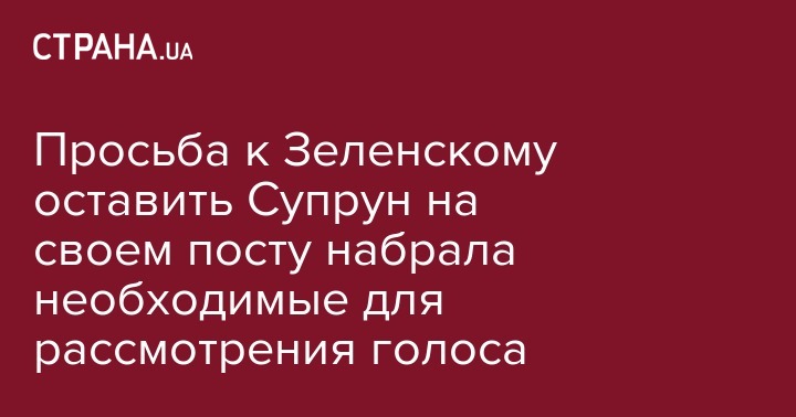 Просьба к Зеленскому оставить Супрун на своем посту набрала необходимые для рассмотрения голоса