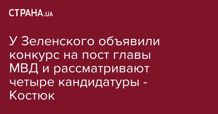 Советник президента Дмитрий Костюк заявил, что в данный момент в правительстве идет конкурс на пост министра МВД, а также, что президент рассматривает варианты различных кандидатур. Об этом он заявил журналистам в среду, 28 июля, после встречи с главой государства Владимиром Зеленским.