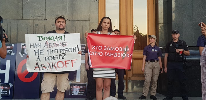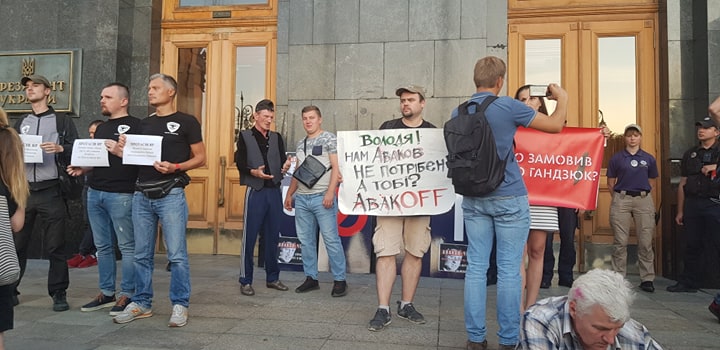 Возле Офиса президента Украины на Банковой активисты собрались, чтобы провести акцию протеста "Аваков – черт" против того, чтобы министр внутренних дел Арсен Аваков занимал должность в правительстве.