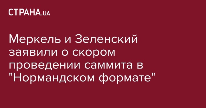 Немецкий канцлер Ангела Меркель и глава Украины Владимир Зеленский высказались за скорое проведение саммита в "нормандском формате". Об этом сообщил представитель правительства ФРГ Штеффен Зайберт, предает Интерфакс