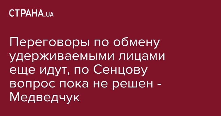 Вопрос обмена заключенного в России украинского режиссера Олега Сенцова, о переводе которого в Бутырку сообщили в СМИ,  еще не решен. Переговоры относительно обмена удерживаемыми лицами в настоящее время продолжаются. Об этом заявил глава политсовета партии "Оппозиционная платформа – За жизнь" Виктор Медведчук. Его цитирует Интерфакс-Украина.