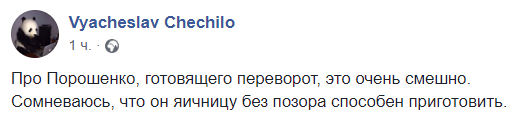 "Про Порошенко, готовящего переворот, это очень смешно. Сомневаюсь, что он яичницу без позора способен приготовить", - иронизирует журналист Вячеслав Чечило.