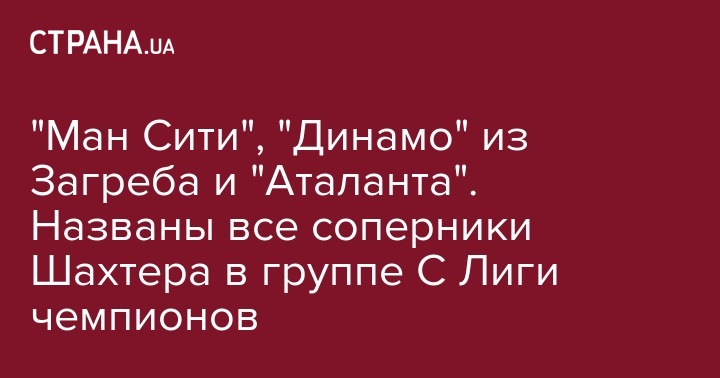 В групповом турнире Лиги чемпионов донецкий "Шахтёр" третий сезон подряд сыграет с английским "Манчестер Сити", а также его соперниками станут хорватское "Динамо" из Загреба и итальянская "Аталанта".