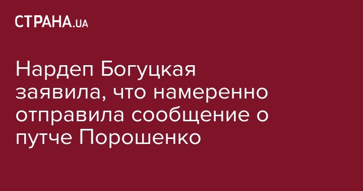 Нардеп Богуцкая заявила, что намеренно отправила сообщение о путче Порошенко