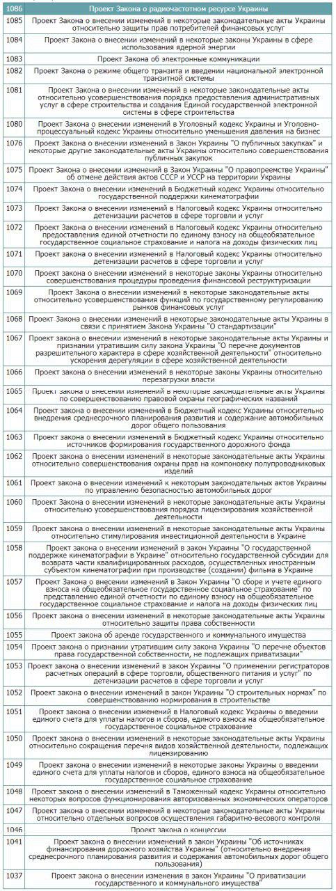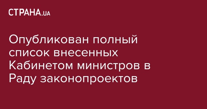 Опубликован полный список внесенных Кабинетом министров в Раду законопроектов