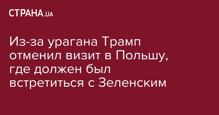 Из-за урагана Трамп отменил визит в Польшу, где должен был встретиться с Зеленским