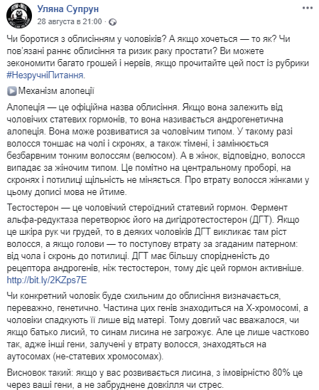 Перед заявлением об отставке Супрун объяснила украинским мужчинам, как бороться с облысением