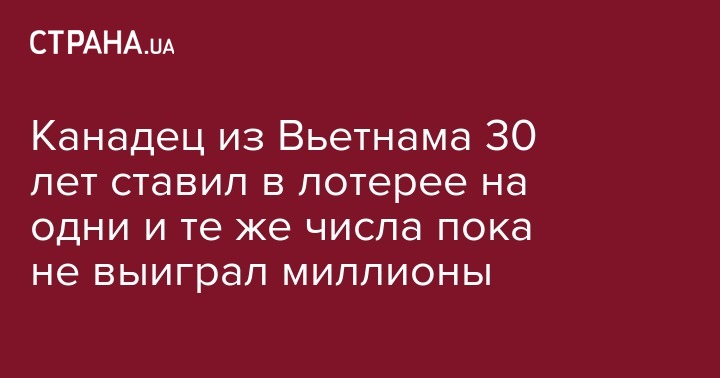 Канадец из Вьетнама 30 лет ставил в лотерее на одни и те же числа пока не выиграл миллионы