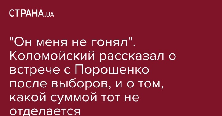 "Мы не обсуждали с Порошенко вопросы, связанные с проблемами его правления и тем, что происходило. Мы с ним ни о чем не договаривались, ничего не это самое. Мы просто поболтали. Про жизнь. Уважительно. Как он себя чувствует в роли не президента, например, какие у него ощущения. Нормально. Привыкает. Конечно, скажем, в последние годы его правления, у нас были не сильно солнечные отношения…", - сказал Коломойский.