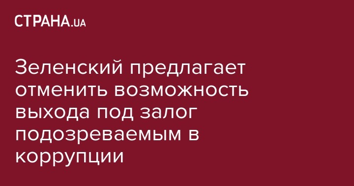 Зеленский предлагает отменить возможность выхода под залог подозреваемым в коррупции