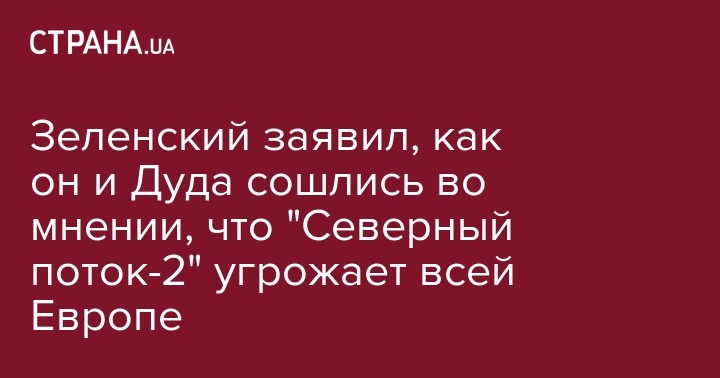 Зеленский заявил, как он и Дуда сошлись во мнении, что "Северный поток-2" угрожает всей Европе