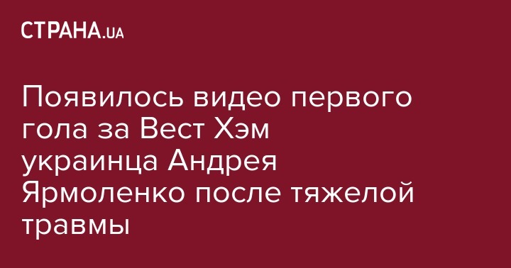 Появилось видео первого гола за Вест Хэм украинца Андрея Ярмоленко после тяжелой травмы