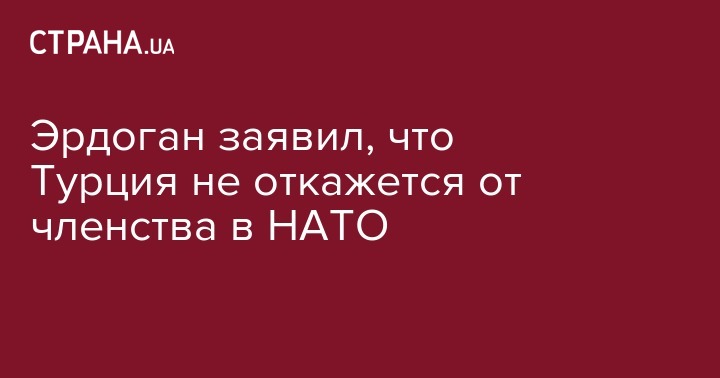 Турция не откажется от членства в Североатлантическом альянсе. Об этом заявил лидер турков Реджеп Тайип Эрдоган, выступая с речью в Стамбуле, передает "Интерфакс-Украина".