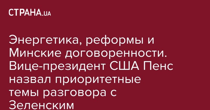 "В первую очередь мне хочется обсудить вопрос энергонезависимости Украины, нашего возможного сотрудничества в области энергетики и экономики. Также мне хочется услышать больше о прогрессе в вопросе внедрения реформ. С нетерпением жду возможности обсудить вопросы энергетики и энергоресурсов", - сказал Пенс.