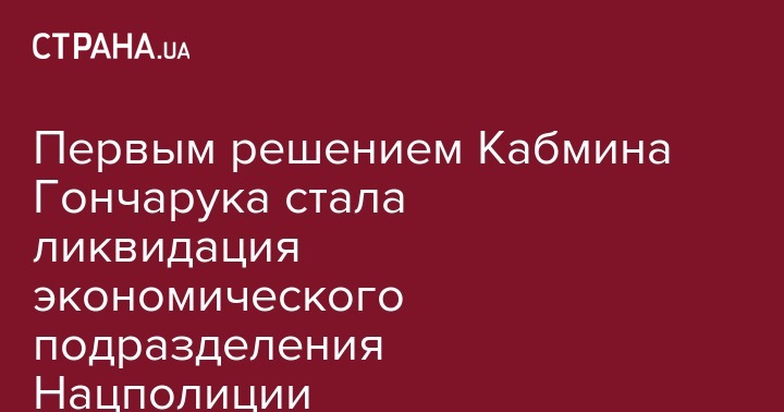 Первым решением Кабмина Гончарука стала ликвидация экономического подразделения Нацполиции