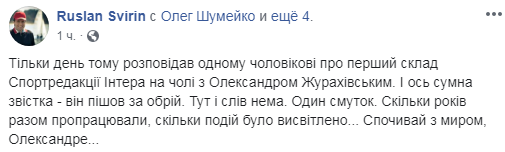 Об этом говорится на странице Facebook его коллеги - журналиста Руслана Свирина.