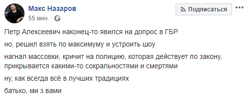"Петр Алексеевич наконец-то явился на допрос в ГБР