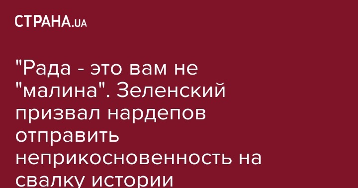 "Украинские депутаты сделали действительно уникальное открытие, они изобрели вечный двигатель политической жизни. Работает очень просто. Сначала депутаты обещают снять неприкосновенность, потом проваливают голосования, потом народ забывает. А на следующих выборах кандидатам есть что обещать. Это работает почти последние 20 лет. Но этому гаджету время отправиться на свалку истории ", - добавил Зеленский.