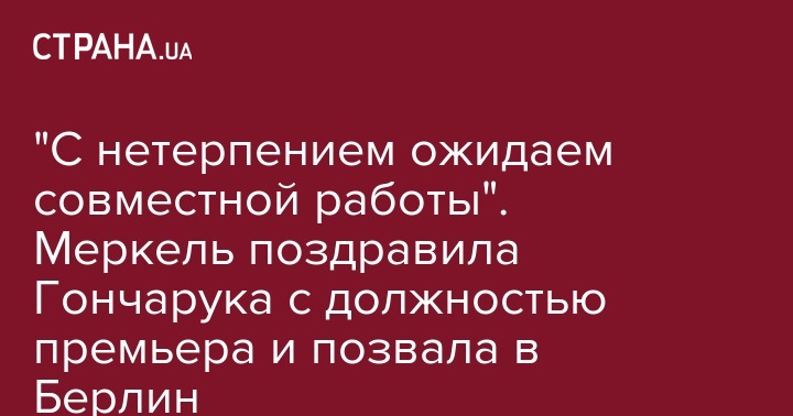 "С нетерпением ожидаем совместной работы". Меркель поздравила Гончарука с должностью премьера и позвала в Берлин