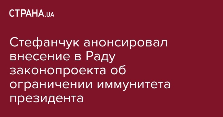 "Мы вносим на следующей неделе один из наших законов - закон об иммунитете, это процедура, которая позволяет привлекать к ответственности президента Украины", - отметил Стефанчук.